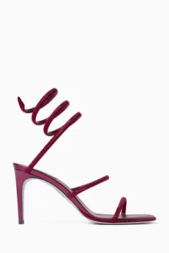 René Caovilla’s Cleo sandals radiate elegance with their crystal-embellished spiral straps, offering signature glamour, graceful curves, and Italian craftsmanship in a striking 80mm silhouette. Colour: Pink, Leather, Embellished with crystals and transmission strass, Open toe, Ankle strap design, Signature glitter sole, Heel height 80mm, Made in Italy Product Code: 218644921
